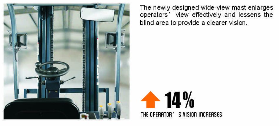 Xe nâng Heli 3 bánh chạy điện dẫn động cầu trước Motor kép, Hệ thống bánh lái đơn hoạt động linh hoạt. Xe nâng chạy điện 3 bánh 1-2 tấn là sự lựa chọn tối ưu cho không gian hoạt động nhỏ hẹp yêu cầu bán kính quay vòng nhỏ nhất.